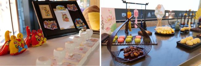 在五谷画DIY体验区,非遗老师指导来宾用黍、稷、麦、豆、麻拼贴作画,寓教于乐中传播”五谷养生”智慧;在业主专属的宋服妆造区,专业团队提供从发型、妆容到服饰的全套服务,让业主们体验古风游园的快乐;同时为来宾提供唐山特色茶歇,精心准备明远斋糕点、安梨汁等特色美食,让传统文化焕发时尚滋味。