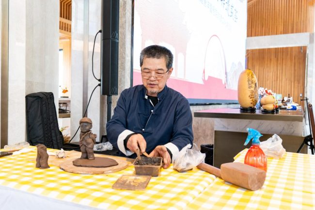 5月4日下午14时15分,伴随着铿锵的非遗地秧歌的鼓点声和传承人的舞步,陕建非遗体验中心在领导们的引领和指导下顺利落成。活动中,工作人员所展示的“陕建·唐沣壹号院非遗文化体验中心”牌匾是特别寻求唐山遵化铁画非遗传承人洪鑫老师进行非遗铁画工艺的设计和制作,希望能够从每个细节出发,多维度进行非遗技艺的呈现与展示,让非遗技艺在场内体现的淋漓尽致。现场更有李贺老师分享泥塑非遗项目的介绍,如何从构思到艺术作品呈现的心路历程,带领市民去探索非遗匠人的艺术世界。